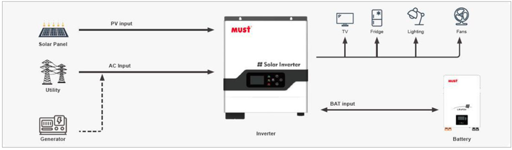 СХЕМА РАБОТЫ ИНВЕРТОРА MUST PV18-1012 VPM II: