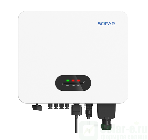 Сетевой солнечный инвертор SOFAR 20000KTLX-G3P 3-фазы мощностью 20 кВт это современный и высокоэффективный трехфазный фотоэлектрический сетевой инвертор второго поколения с двумя MPPT контроллерами и увеличенной входной мощностью от СБ. Данный инвертор полностью подходит для построения гелиосистемы для экономии и продажи электроэнергии в сеть ( объекта микрогенерации ). Инверторы серии KTLX имеют уникальную встроенную функцию - возможность снижения мощности по команде делимитера (устройства, отслеживающего передачу электроэнергии в сеть). Датчики делимитера устанавливаются перед счетчиком, если определяется отдача электроэнергии в сеть, делимитер дает команду инвертору снизить вырабатываемую мощность. Тем самым предотвращается отдача электроэнергии в сеть (очень часто российские счетчики считают отданную электроэнергию как потребленную). Сетевой инвертор используется только совместно с городской сетью, принцип его работы заключается в подмешивании ( добавлении) энергии вырабатываемой солнечными батареями в вашу сеть для обеспечения дополнительной нагрузки или экономии. К примеру, если текущее потребление на вашем объекте 20 кВт*ч, а солнечные батареи вырабатывают 15 кВт*ч, то из городской сети вы возьмете всего 5 кВт*ч, а остальные 15 кВт*ч в вашу сеть вольет сетевой инвертор.