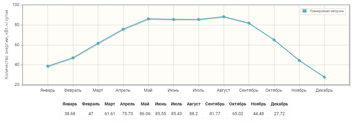 Выработка солнечной электростанции по месяцам: